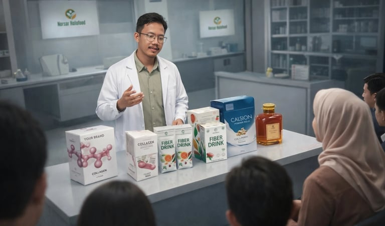 CV Norsar Halafood merupakan perusahaan maklon minuman yang menyediakan layanan produksi, pengemasan, dan pendampingan legalitas untuk berbagai kebutuhan brand.